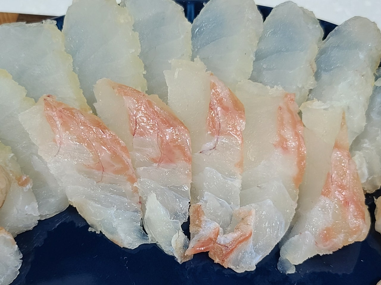 횟감을 다시마로 감싸고 적당한 강도로 진공해서 숙성하는 것을 곤부지메(다시마 숙성)라고 하더군요. 연어, 옥돔, 광어 등에 널리 적용되고 어렵지 않게 해왔는데 유독 광어는 쉽지 않았습니다. 나름의 시행착오를 거친 경험으로는 광어로 곤부지메할 때는 횟감의 두께와 숙성시간이 중요하다는 생각입니다. 두께가 얇은 필렛을 24시간 이상 숙성하면 횟감이 젤리 같은 식감이 될 수도 있으니 중간중간 체크해서 원하는 숙성상태의 맛을 즐기시 길 추천드립니다.